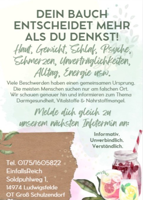 Ab sofort finden im EinfallsReich immer wieder Infotermine zum Thema Darmgesundheit, Vitalstoffe & Nährstoffmangel statt.